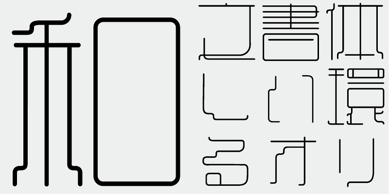 I wanted to create letter forms associated with the character used for my own name: 直. When I overlaid sketches of character elements that I designed, I found that enlarging counter spaces of characters gave the typeface a unique appearance. Also, elegance of curves has always been a part of my core philosophy of character design, and I adopted a 1/4 arc as the basic curve.