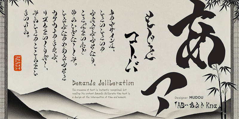 The characters of this typeface have rough and rugged shapes. This design emphasizes the distinguishable parts of the characters to create a visual impact. However, when used in text, it intentionally obscures readability. It was created as a typeface that subtly incorporates accents that evoke a sense of uneasiness.