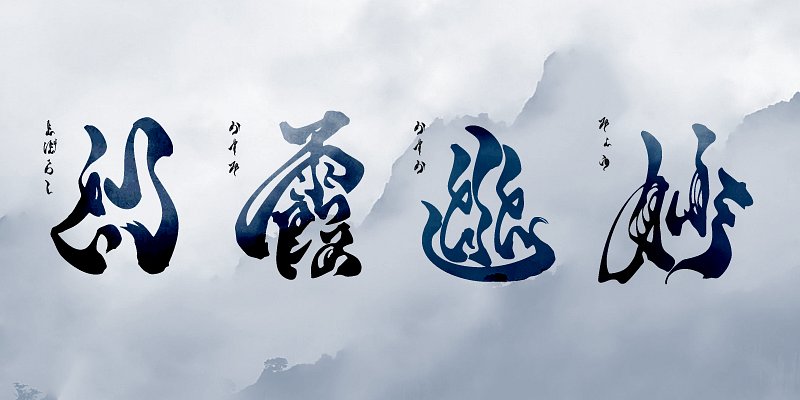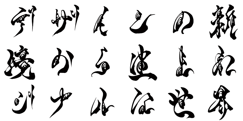 You can instantly find characters of the AB-kaij typeface, but it takes some time to read each character. Each character of this typeface can convey more than the literal meaning of the character. The typeface can be used to apply various image effects such as mirroring, etc. on various kinds of backgrounds.