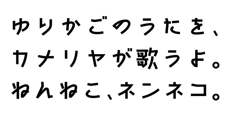 Like parquetry, even with straight line segments, the typeface has a warm-hearted and fanciful quality. This display typeface is suitable for picture books and children’s books.
