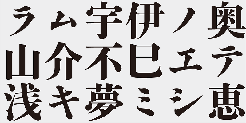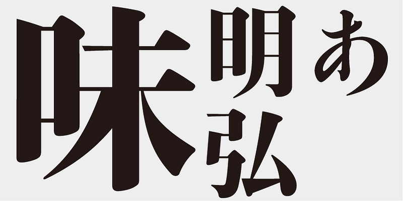 Ajimin has the flavor of hot metal type and, like Bodoni, its vertical strokes are clear and heavy and its horizontal strokes are precise and thin. Its elements possess strength and stability. Ajimin is a unique Mincho-style display typeface. Ajimin Modern’s elements are more sharply designed, but that sharpness is balanced by the richness and elegance of the design. Ajimin’s biggest feature is its 10 kana variations, ranging from running-hand-like designs, to revivals of designs from the age of hot metal type, to modern style kana. These variations make Ajimin useful for a wide range of purposes.