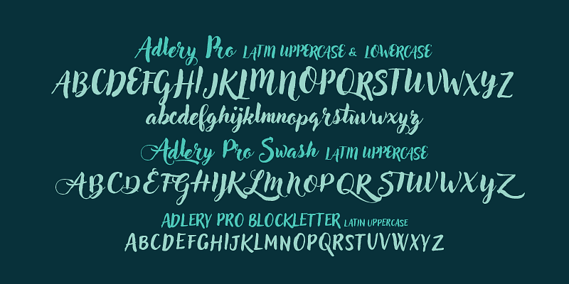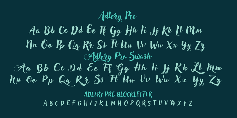 Adlery is a brush typeface designed by Cosimo Lorenzo Pancini for display use. It has a handmade feel and it’s optimized for maximum readability at medium sizes. The typeface comes in three styles: Basic, Swash and Blockletter Uppercase and has a double set of lowercase alphabets that alternate in writing, so that no double letters are the same.