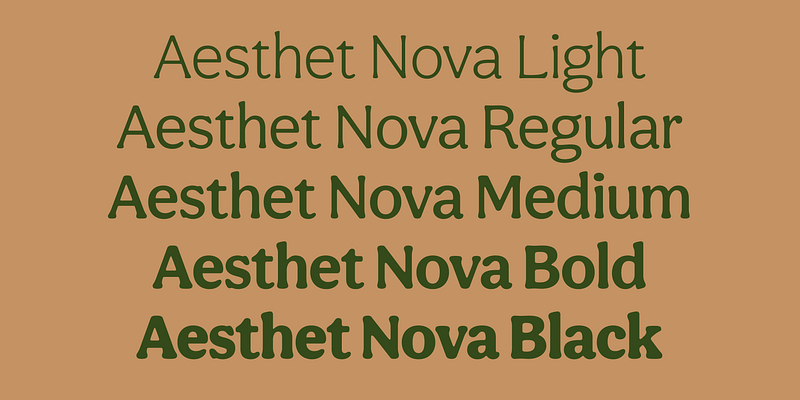 Aesthet Nova is a display type family. Released initially as Aesthet in 2015, it had a significant makeover. Inspired by the 70’s aesthetics, Aesthet Nova remains true to its original “back to nature” roots. It is a smooth talker with a larger than life personality. Equipped with an extended Cyrillic character set, it features rounded serifs, ball terminals and soft corners. Details include five weights and over 680 characters. OpenType features include inferiors, superiors, fractions and ligatures.