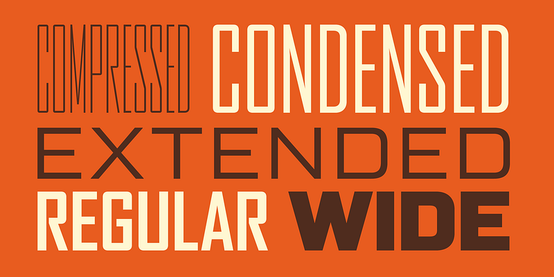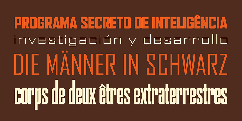 ATF Agency Gothic was designed by Morris Fuller Benton in 1932 as a lone titling typeface. In 1990, David Berlow saw potential in the squared forms of the narrow, monotone capitals. He designed a lowercase and added a bold to produce Font Bureau Agency, an immediately popular hit. Sensing its potential to be than just a useful condensed face, Font Bureau developed Agency into a major series offering five weights in five widths; FB 1990-95