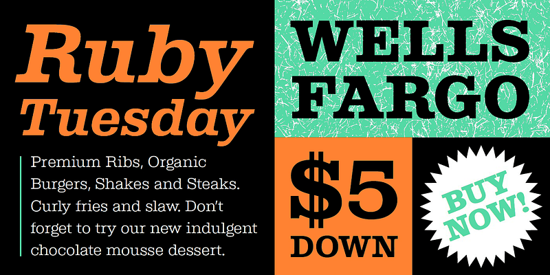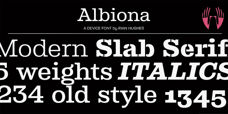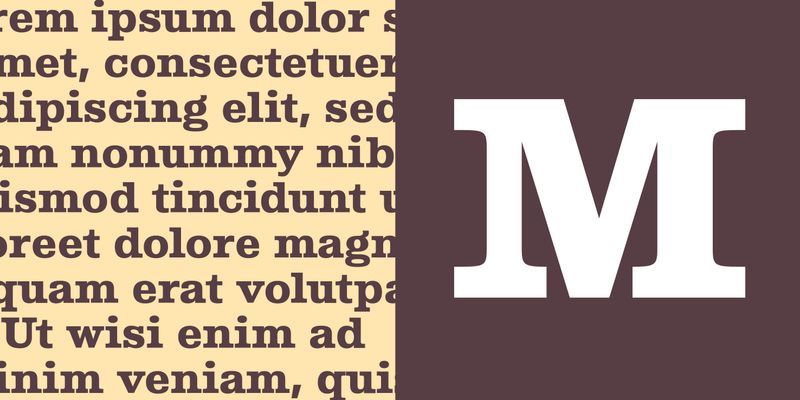 A slab-serif family with elegant inwardly-curved strokes. Includes italics, old-style and tabular numerals. A modernisation of classics such as Clarendon. Suitable for extended text and headlines.