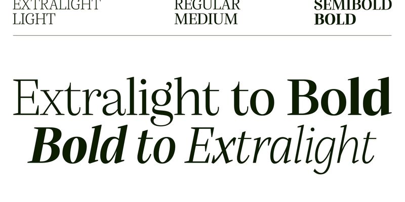 Alga is a high contrast modern typeface with a contemporary look. It has subtle details that make it appealing for big sizes. It is a lively serif typeface with lots of fancy curves.