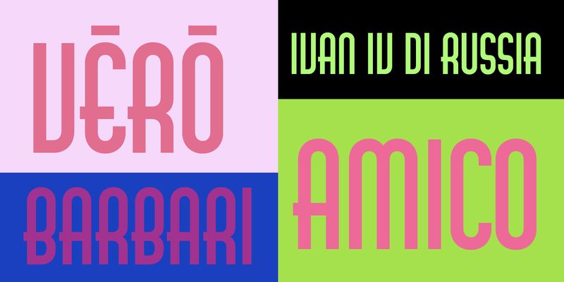 Udine is an all-caps, modular sanserif that shows clear Art Deco influences in its narrow proportions and geometric shapes. This type design is very similar to Neon, one of Nebiolo’s most iconic typefaces. In fact, it is similar to the point that we would be talking about plagiarism if they had not been created within the same company.