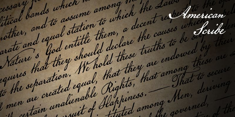 American Scribe™ replicates the penmanship of Timothy Matlack (1736–1826) who engrossed the famous Declaration of Independence. The font has scores of OpenType features and full Latin support.