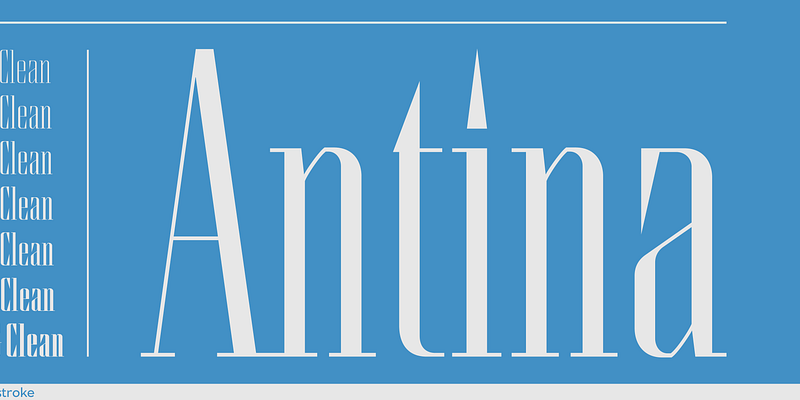 Antina emerged from Tony’s development of the Thinstroke logotype. Its sharp and clean lines and rational structure adapted well to a large family of weights.