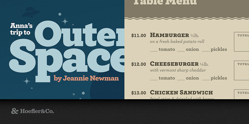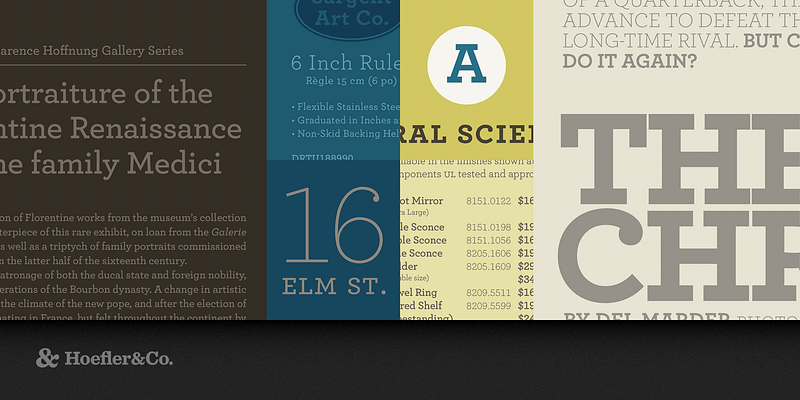 The Archer typeface was designed by Jonathan Hoefler and Tobias Frere-Jones in 2001, with contributions from Jesse Ragan and additional material by Jordan Bell and Andy Clymer. While rooted in the ‘geometric slab serif’ style that emerged in the early nineteenth century (and reached full flower a century later), Archer’s many liberties with the style include its uncharacteristic application of ‘ball terminals’ to capital letters such as ‘C’ and ‘S,’ a detail traditionally found only in the lowercase alphabet. Archer was created for Martha Stewart Living, in whose pages the typeface first appeared in 2001.