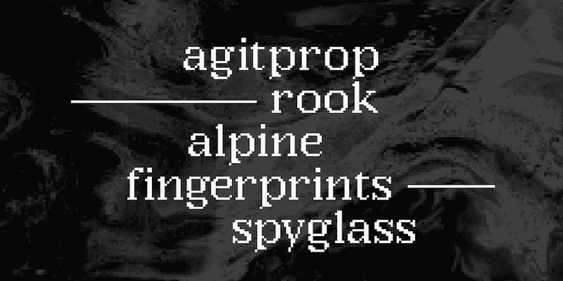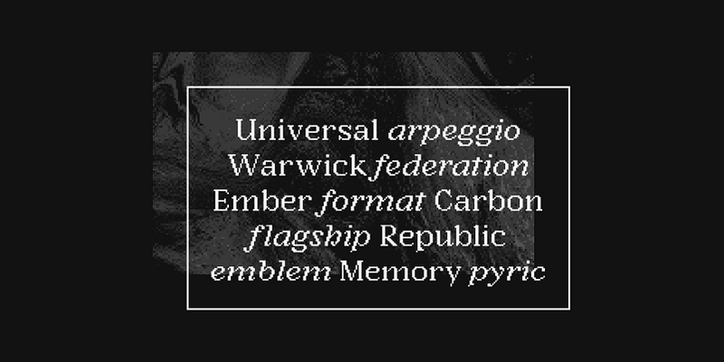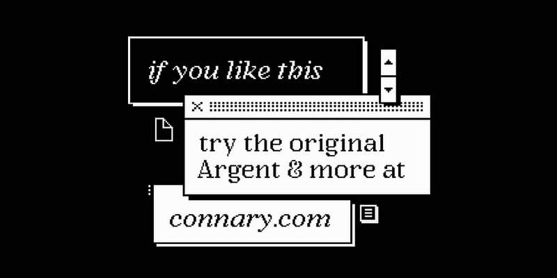 Argent Pixel CF is a playful bitmap version of the original dashing Argent typeface. With a pronounced x-height, this unexpectedly readable serif recreates the original font’s distinctive look in a style evocative of early Macintosh typography. It’s readily useful with its angled serifs and swashy italics for all kinds of typographic tasks needing a retro, low-resolution aesthetic, such as identities and brands, advertising, magazines and journals, book covers, packaging and labels, and more.