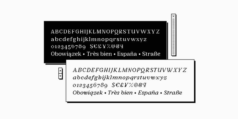 Fonts in the Adobe Fonts library include support for many different languages, OpenType features, and typographic styles.