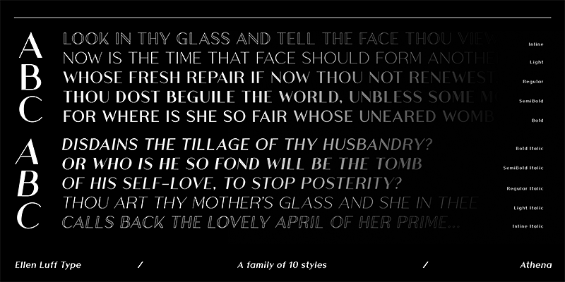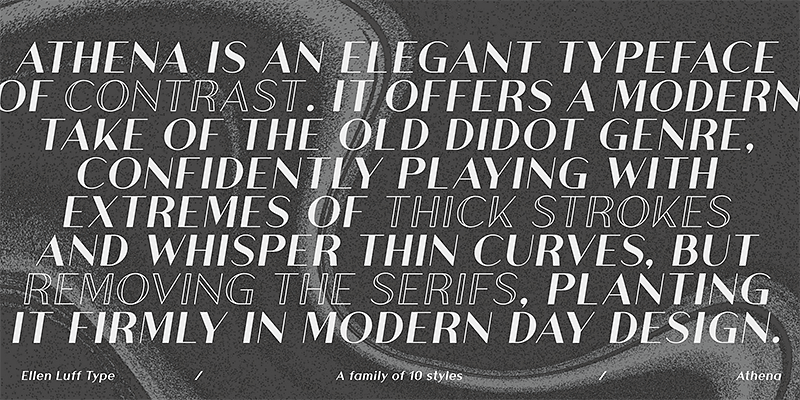 Ellen Luff Type Foundry offers a diverse and captivating range of thoroughly modern typefaces that cater to the distinguishing needs of designers, businesses, influencers, and creatives worldwide. Each meticulously crafted font in the collection — serif to sans, text to display — reflects Ellen’s passion for beautiful design and commitment to delivering top-notch solutions for modern typographic situations. Previous clients include Apple, NBC, Russian nut sellers, and remote bars in the Atacama Desert.
