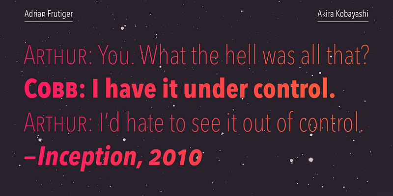 Akira Kobayashi worked alongside Avenir’s esteemed creator Adrian Frutiger to bring Avenir Next Pro to life. It was Akira’s ability to bring his own finesse and ideas for expansion into the project while remaining true to Frutiger’s original intent, that makes this not just a modern typeface, but one ahead of its time.