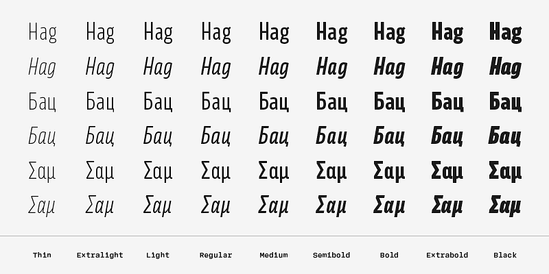 A gently condensed sans that challenges convention takes inspiration from the lettering work of Czech designer Jaroslav Benda, a lesser known treasure of mid-century graphic design.