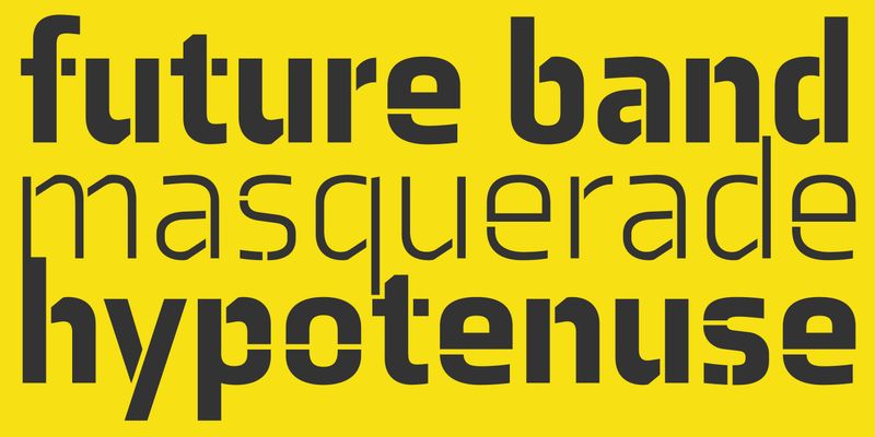 Axia is a uni-width sans serif of concise letterforms. The type consists of ten weights from light to black, each with italics and small caps. Two display styles, Stencil Light and Stencil Black feature a unique aesthetic. A distinct fragmentation of the letters gives this stencil design its particular character. The type is perfect for captivating big sizes; shapes of abstract floating parts allure the eye and form nicely proportioned type when united.
