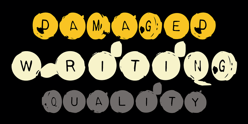 Backspacer was designed in 1993. Years ago, by happenstance, designers Nancy Mazzei and Brian Kelly found an old decrepit typewriter in an abandoned lot in Brooklyn. They kept it around their apartment for two years. Then one day they decided that it was time to move and they planned to throw the old typewriter away. But it was so beautiful they wanted to keep at least a part of it. They kept the keys in a brown bag until one fine day the keys were introduced to a camera. It was a match made in heaven that resulted in some beautiful quirky images of typewriter keys. These images were the inspiration for Backspacer. They were scanned, traced and turned into a working typeface by Zuzana Licko.