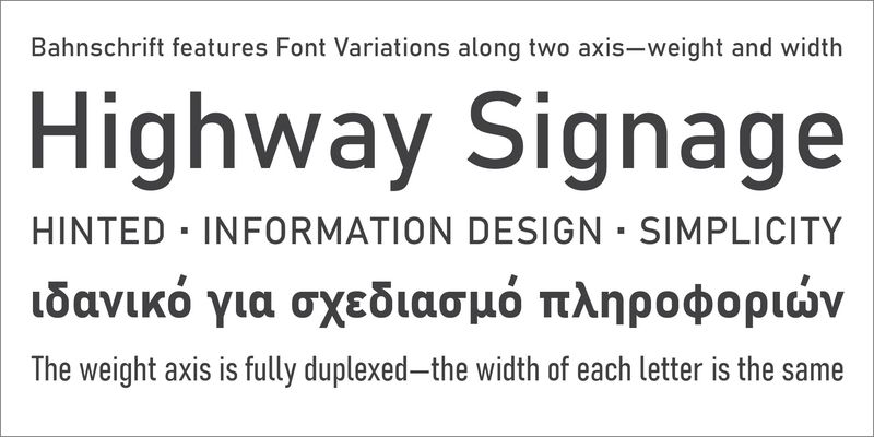 Bahnschrift Bahnschrift is a sans serif typeface that looks mechanically drawn and deceptively simple. It is based on the German industrial standard typeface design DIN 1451, which has been used in highway signage and has been widely influential since its introduction in 1931. The font’s clean, no-nonsense style works well on signs or notices and in headlines, and gives an authoritative look to any sort of information design