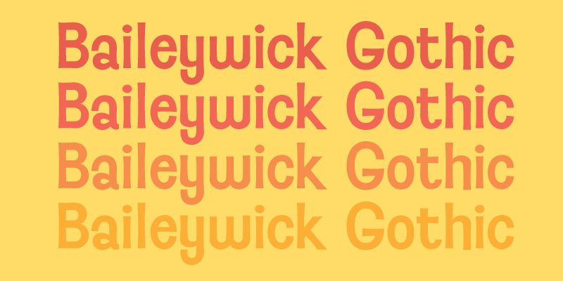 Baileywick Gothic is a Jukebox original sans serif font with an upbeat exuberance. The slightly modulated baseline and large x-height make it easy on the eyes.