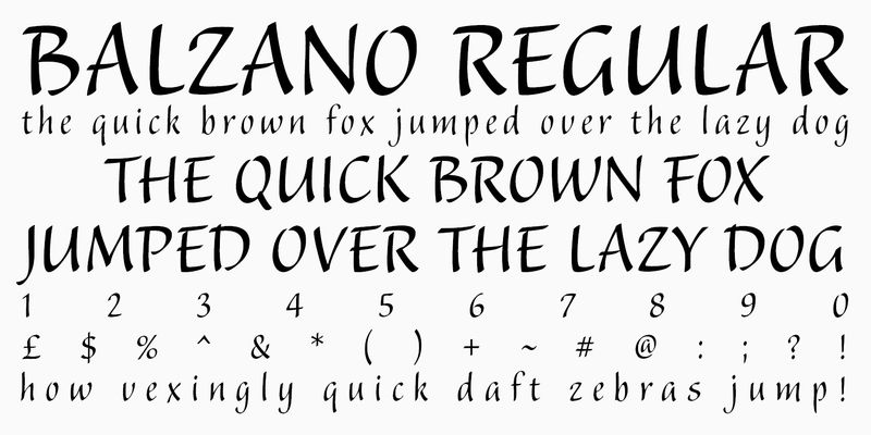 America’s most famous carver of inscriptions, including those at the John F. Kennedy Memorial in Arlington National Cemetery, John Benson conceived Balzano (Italian for “bouncing”) as an upright script whose character would come from active individual strokes and letter shapes. He was particularly inspired by a page of pen-written letters by calligrapher Raphael Boguslav. As a result, Balzano features thin hairlines and pronounced vertical strokes with active terminals. Open counterforms and varying letter heights contribute to the vitality of this 1995 Adobe Originals release. Although suitable for brief copy in larger text sizes, Balzano excels in display settings.
