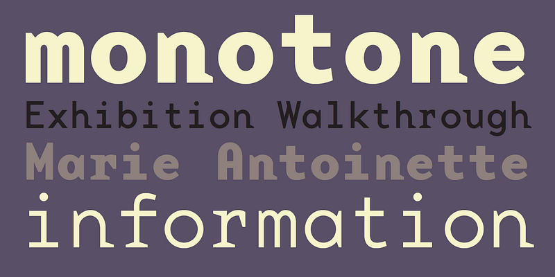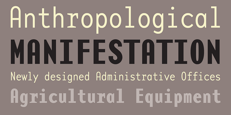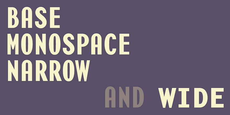Base Monospace, as its name implies, belongs to a category of typefaces characterized by letter designs that each occupy a single set width, like the infamous typewriter font Courier (designed in 1956 by Howard Kettler), and the many other monospaced fonts that inspired its design