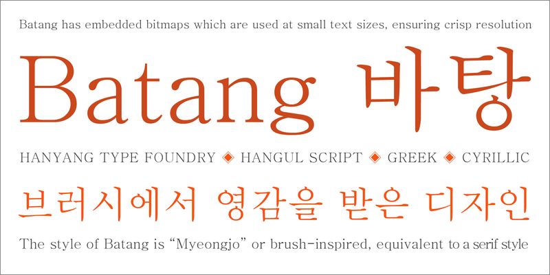 Batang is a Korean font that features a mincho (serif) stroke style.