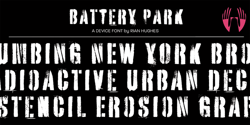 A heavy distressed stencil with urgency and grit. Best used larger, where the details can be seen.