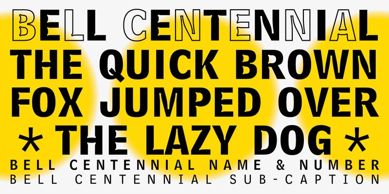 Matthew Carter designed Bell Centennial in 1978 specifically for AT&T Corporation (the name honors their 100th anniversary) to use in telephone books. Carter developed it to have high legibility at small sizes, and for composition on high-speed, cathode-ray-tube composing machines. (Bell Gothic, the typeface originally designed for telephone books in 1937 and for composition on the hot metal Linotype machines, was no longer usable in the new technology.) Bell Centennial is a sturdy, condensed sans-serif design that achieves great economy of space while being highly legible. Bell Centennial can be used for modern display purposes and, of course, for small print and lists. The Alternate version of Bell Centennial Bold Listing sits on a standard baseline; the original version sits far below the baseline, and cannot mix properly with other fonts on the same line.