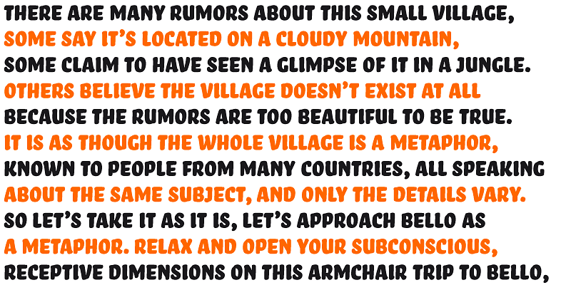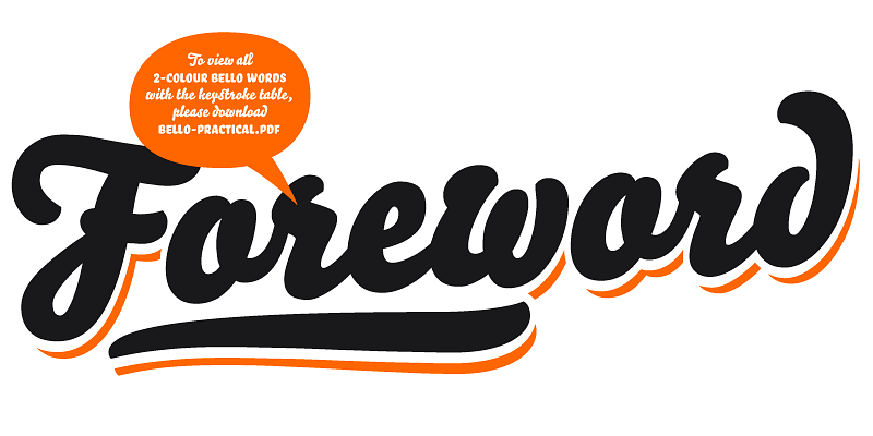 Bello is a brush typeface for headline point sizes - it’s big & beautiful! Bello comes in 2 different styles: script & all caps. A contemporary feel good typeface.