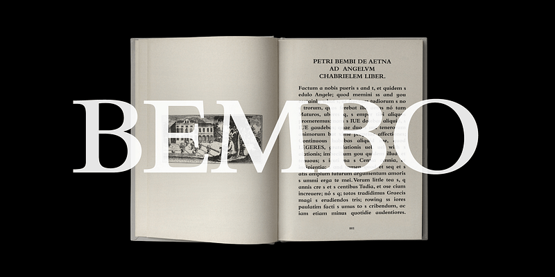 The origins of Bembo go back to one of the most famous printers of the Italian Renaissance, Aldus Manutius. In 1496, he used a new roman typeface to print the book de Aetna, a travelogue by the popular writer Pietro Bembo. This type was designed by Francesco Griffo, a prolific punchcutter who was one of the first to depart from the heavier pen-drawn look of humanist calligraphy to develop the more stylized look we associate with roman types today. In 1929, Stanley Morison and the design staff at the Monotype Corporation used Griffo’s roman as the model for a revival type design named Bembo. They made a number of changes to the fifteenth-century letters to make the font more adaptable to machine composition. The italic is based on letters cut by the Renaissance scribe Giovanni Tagliente. Because of their quiet presence and graceful stability, the lighter weights of Bembo are popular for book typography. The heavier weights impart a look of conservative dependability to advertising and packaging projects. With 31 weights, including small caps, Old style figures, expert characters, and an alternate cap R, Bembo makes an excellent all-purpose font family.