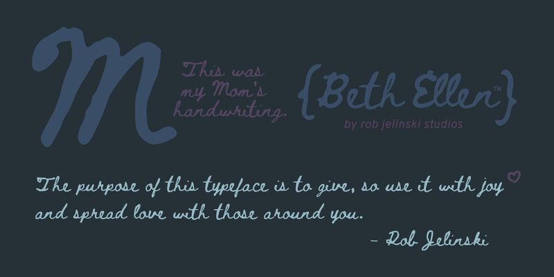 Upon it’s formal release Jelinski stated, “The purpose of this typeface is to give, so it is totally free to use for personal or commercial projects under the SIL Open Font License. My single request is that you help the legacy of Beth Ellen live on by sending a short note to someone you love each time the font is used. Tell them you love them, encourage them to be their best, or send them a scripture. This is the way Beth Ellen lived her life, writing notes to share love and faith.”
