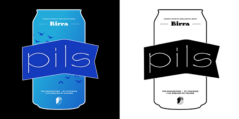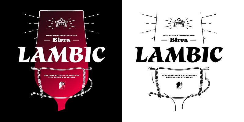 Birra Pils (Thin) designed by Mark De Winne started as a straight up revival of some old “lettrès ornée” found in a French specimen book. In its current form, it’s distilled significantly to give you all of the complex flavor and just a touch of lightheadedness. It’s skeletal forms reduce the hangover while keeping lots of flair and flavour, with a crisp and tart uppercase, while lowercase brings the funk home. A delightful aftertaste is found in the assortment of emojis to tickle your typographic taste buds.