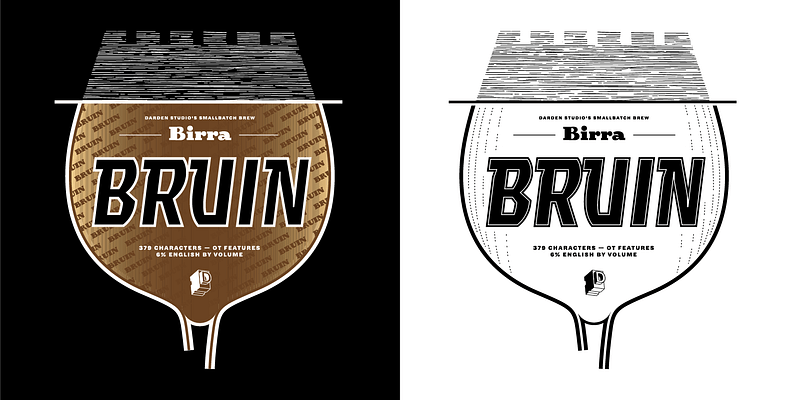 Bruin, designed by Elena Schneider in 2019 as Medium Italic, reinterprets the familiar associations with the beer name Oud Bruin (old brown) by adapting the Blackletter font genre. It goes well beyond the familiar by delivering a vibrant and contemporary Blackletter with a passion for straight lines. Adding to the Bruin-like richness, Upper- and lowercase don’t have exactly the same voice but create a nice duet when singing together. Uppercase set on its own offers a contrasting feeling.