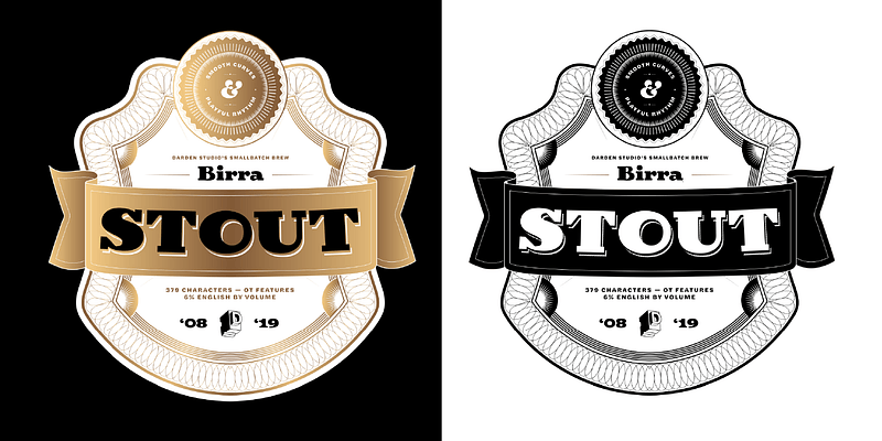 Stout, designed by Joshua Darden in 2008 as the upright Bold, was the first release of a project always intended to evolve. The result of years of compulsive doodling, Stout was developed with and published to amuse Matteo Bologna (hence the name being the Italian spelling for Beer).