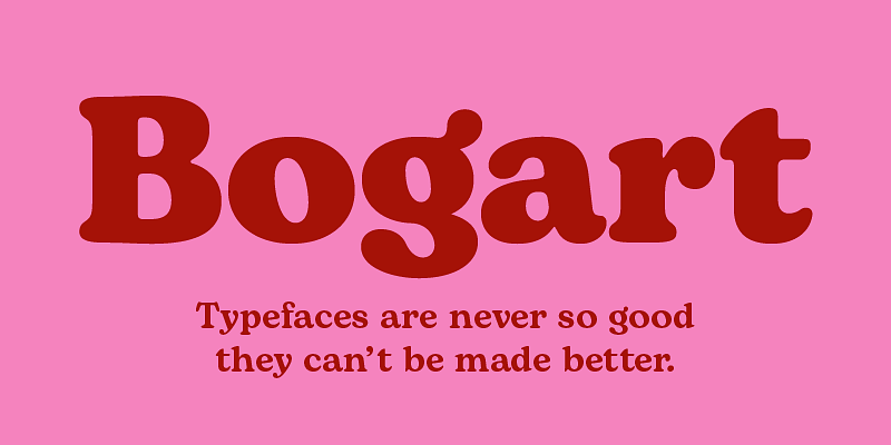 Bogart has been designed by Francesco Canovaro as a personal homage to the iconic look of low-contrast oldstyle fat faces, like Cooper Black (Oswald Bruce Cooper, 1922) and Goudy Heavy Face (Frederic W. Goudy and Sol Hess, 1925-1932). Originating from the modern old style of Bookman, these muddy, goopy shapes found their pop culture iconic status thanks to rub-on transfers and phototypesetting systems in the 1960s and 1970s. Positively bursting with hippie energy and exuberant vitality, they often included an extensive repertoire of swash characters, bridging the space between lettering and typography. In researching these shapes, Canovaro decided to include also the influence of another idiosyncratic american old style typeface, Windsor, quoting its sloping shapes and quirky solutions, and expanding the weight range of Bogart to include a selection of display light weights where the muddy shapes of the heavy weights distill into elegant teardrop terminals. All the nine weights of Bogart, as well the matching true italics forms, feature an extended charset of over 1600 glyphs, covering 219 languages using latin, cyrillic and greek alphabets, and sporting a complete set of Open type features including alternate forms, discretionary ligatures, small capitals, stylistic sets, positional numbers, case-sensitive, terminal and initial swash forms. To add flexibility for editorial usage, a text-oriented Bogart Alternate set of nine weights was added to the family keeping the design more similar to its modern old style model and allowing for a heavy readable mid-weight range. The latest update introduces new Compressed and Condensed weights, as well as technical enhancements, updated kerning, and redesigned Greek letterforms, making this beloved family even more adaptable for diverse design needs. Hollywood icon Humprey Bogart famously said: “things are never so bad they can’t be made worse.“. This typeface was named after him, aiming at a way to embody the moody spirit of vintage typography, from film noir aesthetics, to the pop culture reference, from joyous swash titling and logo design to strict, balanced text typesetting. Because “typefaces are never so good that they can’t be made better”