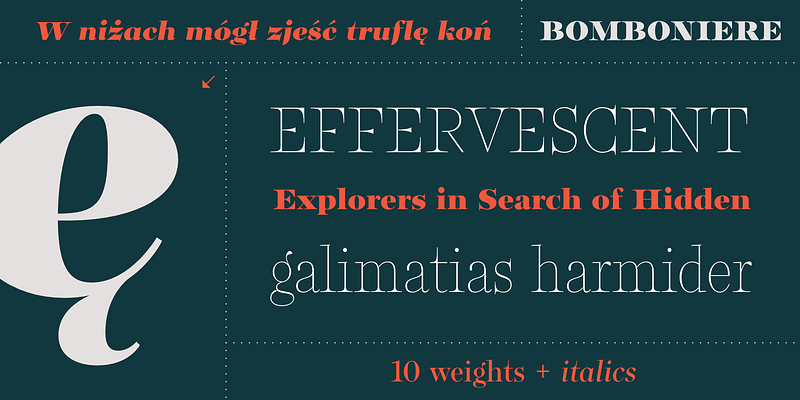 With a passion for good typography, a group of typedesigners from the capital city of Warsaw, Poland decided to join forces and create a unique library of typefaces. The ever-growing graphics market requires a special approach. Our offer is addressed to conscious designers seeking original and technologically advanced fonts.