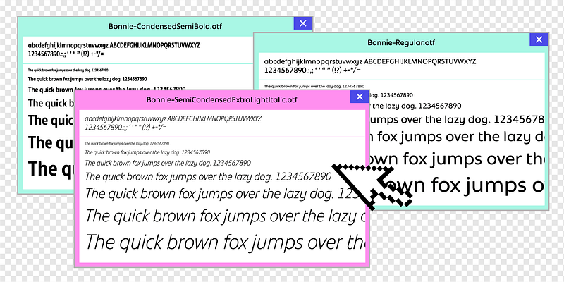 Bonnie was born out of the desire for a clean sans serif that combined the bold qualities of geometric typefaces from the twentieth century with soft and human qualities that produce a friendly atmosphere. Bonnie’s capitals speak a powerful and clear language, while its lowercase characters—with their large x-height, open construction, and curvy details—ensure that it addresses both aesthetics and functionality. Coming in three widths, Bonnie is a great tool for copy fitting in a variety of layouts.