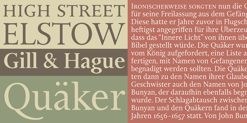 Bunyan Pro is synthesis of Bunyan, the last face Eric Gill designed in 1934 and Pilgrim, the machine face based on it, issued by British Linotype in the early 1950s — the most popular Gill text face in Britain until well into the 1980s.