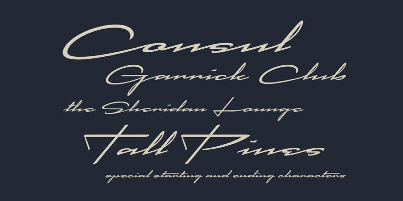 A stylish extended script that drips elegance and refinement. A hint of mid-century, but entirely contemporary.