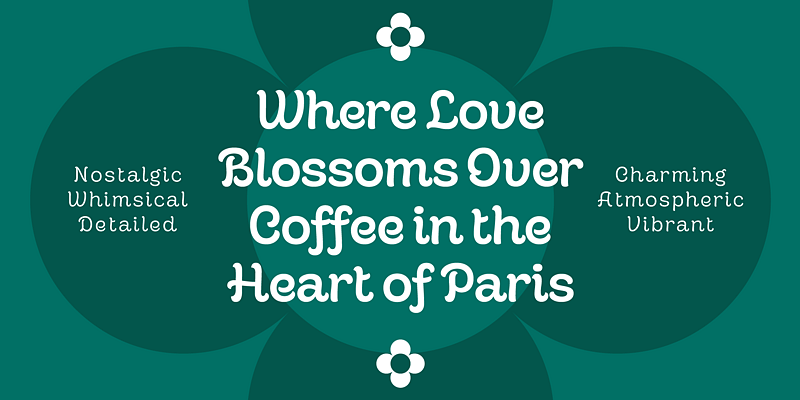 Cafe Romantique is a charming take on an upright script. Pavel Korzhenko designed it for branding a cozy Parisian café one might find while strolling in Saint Germain de Pres or for packaging handmade caramelle that only an Italian Nonna could make. With all its curves and swash-like strokes, it is ideal for display typography, but because of the open shapes, it works well in smaller text, too! Available in four distinct weights—Light, Regular, Medium, and Bold—or as a variable font.