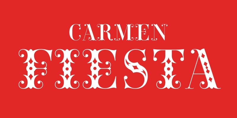 Carmen Fiesta, or simply ‘Fiesta’ (for friends), is a flourished style inspired by the ornamental typography used in vintage bullfighting and southern festival posters. It features a decorated stylistic set that enhances its ornamental effect. As part of the Carmen family, it serves as the expressive and joyful younger cousin, like a festive costume for special occasions.