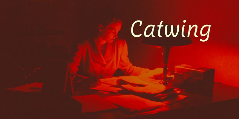 Although Catwing has a typewritten feel, it’s actually proportionally spaced. Unlike most scripts, you’re encouraged to break the rules and type in CAPITALS.