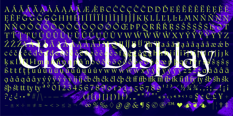 Ciclo is a type system inspired by the work of Lucian Bernhard, specifically Bernhard Modern, with high contrast and a dramatically inclined axis. The inclination of the inner axis, nearly 45 degrees in some characters, was found to be a particularly intriguing aspect. To that end, I have endeavored to preserve a notably steep angle in the majority of the characters within the Display family. The system will also include a Text family with a lower contrast and tilt angle for easier reading. The name “Ciclo” is derived from the existing rotation on the internal axis of the characters and the interpolation between the Display and Text versions, in search of a third variant (Subhead) in which this angle is a factor that determines the optical sizes of the different variants.