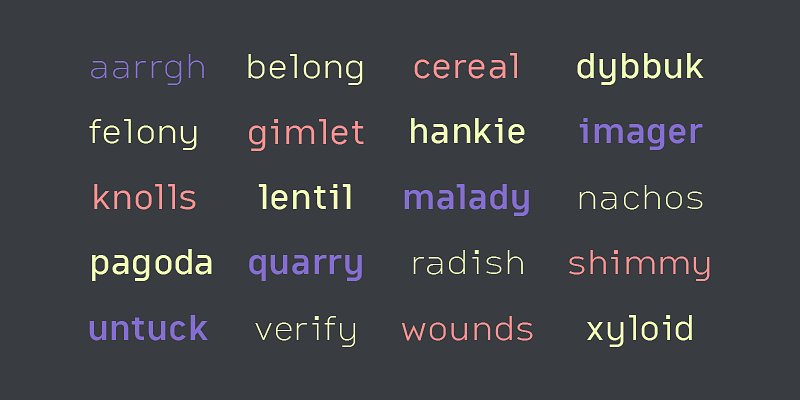 Citrine Variable draws upon the machine-driven typography of the 1980s American PC boom. A large x-height means easy onscreen reading and a round joint means friendliness. Citrine starts with Epoca’s essential widths and spaces—made for the Hermes 3000 typewriter—then adds tension with flat sides in curved forms, a double-barrel lowercase a, and the tighter spacing necessary for modern screen use. Citrine has true small caps, sized to the lowercase, and can be set as unicase.