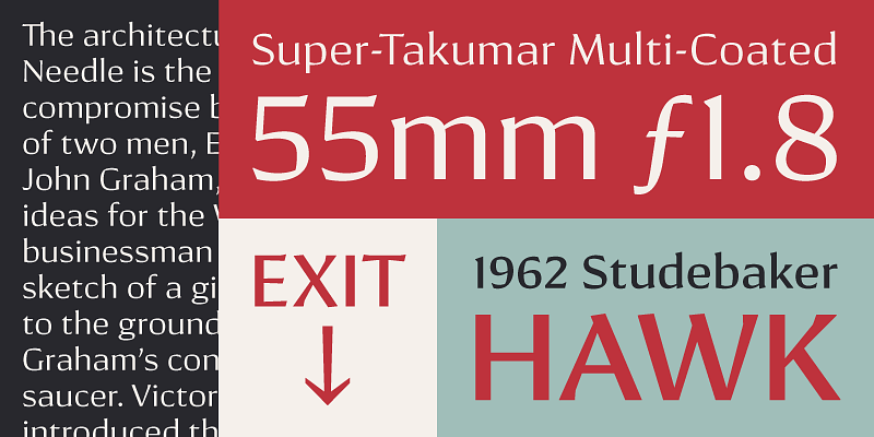 Conglomerate is a unique blend of sans and serif typographic traits resulting in a clean and versatile font family with large, open counters for legibility in text yet crisp details at display sizes.