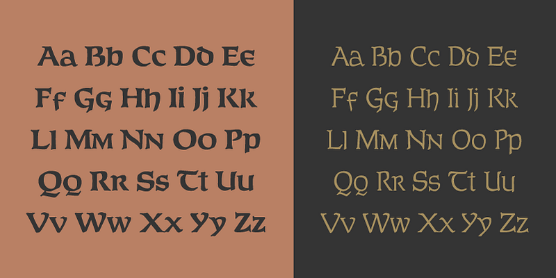 Connemara Old Style is an uncial typeface embodying a distinct Celtic charm. Drawing inspiration from traditional Irish script styles with broad, rounded, calligraphic shapes, it is perfect for mimicking something written with a quill on parchment or vellum. This all-caps design is well-suited for giving a historical or decorative look to projects such as festivals or fairs, museum exhibits, fantasy novels, archeological magazines, craft beer labels, artisanal food packaging, and handmade goods.