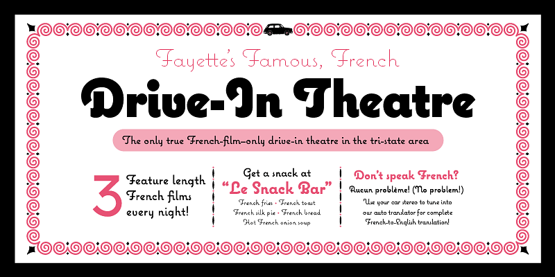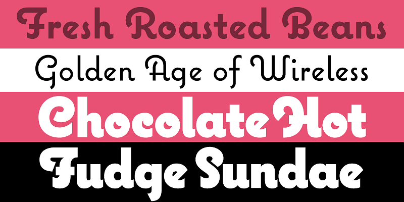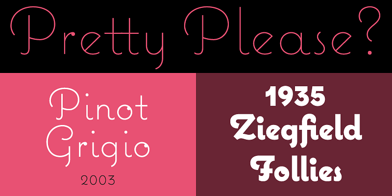 Coquette (2001, 2017) is an unconnected upright script, a sort of hybrid between French scripts, such as Typo Upright, and 1930s-era geometric sans serifs, such as Kabel. The idea for this typeface came to me in the early ’90s while I was designing a logo. It took me several tries over several years to get it to look the way I wanted it to, a process that taught me a lot about type design and drawing letters. Since its release, it’s become one of my more popular fonts, which is very gratifying since it’s my favorite of all the fonts I’ve designed. In 2017, I expanded the original three weights (Light, Regular, and Bold) to six with the addition of Thin, Extrabold, and Black. I also added several alternate characters (lowercase b, o, s, and ampersand) as well as arbitrary fractions, superscript, a full set of f-ligatures, and a bunch of math characters which were not included in earlier versions.