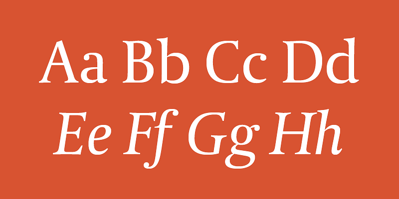 A refined serif newsface with distinctive character and clarity.