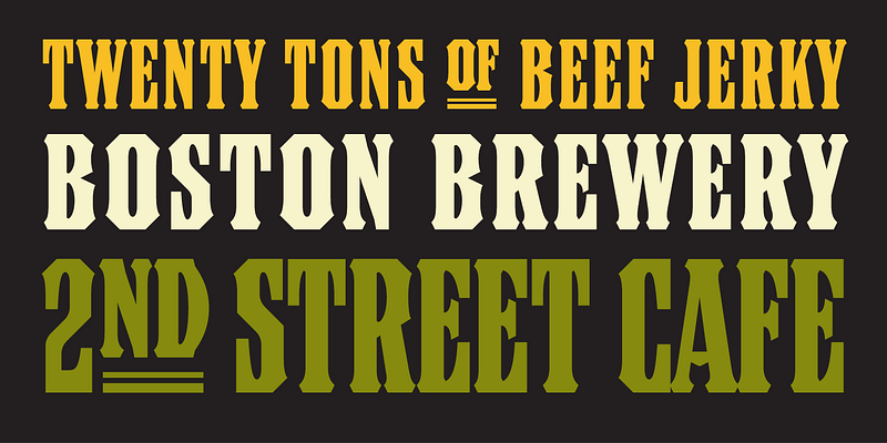 Downer’s work on Council began in 1996 and concluded in 1999. He tried to develop the main font with as much fidelity to the proportions of the characters on the candy tin as was reasonable while adhering to certain established typeface production standards of today. (This font is kerned, for instance.) Of the full-size capitals in the face, only those he found in the name and location on the candy tin owe their shapes to one particular source. Thus, the A, B, C, D, F, G, H, I, J, L, N, O, R, S, U, W, and & all have models. It should be mentioned that the D is unusual because it is the only letter with a convex side in this alphabet. This inconsistency exists in the original and is one Downer decided to preserve. The S, by comparison, had a squarish form he didn’t favor, so he deviated from it in his font. The balance of the upper case and small caps, plus the figures, punctuation, monetary symbols and miscellaneous reference signs represent the designer’s attempt to fill out the font.