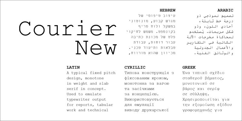 The original Courier was designed by Howard “Bud” Kettler in 1955 or 1956 for IBM typewriters and later revised with input from type designer Adrian Frutiger for IBM’s Selectric typewriter series, where it became the most common office typeface. It was adapted as a computer typeface to become one of the core Windows typefaces.